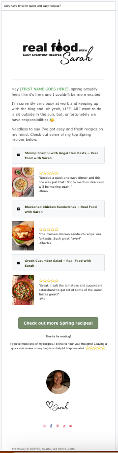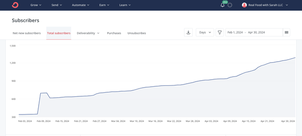 3rd May 2024 Client Email Growth 200% subscriber growth with my client Real Food with Sarah over the last 3 months!